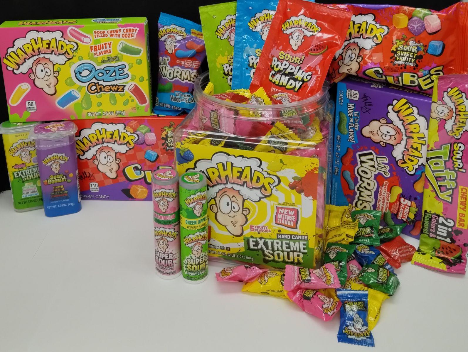 We carry a large variety of WarHead products. Stop by one of our locations for these and other sour candies and drinks.